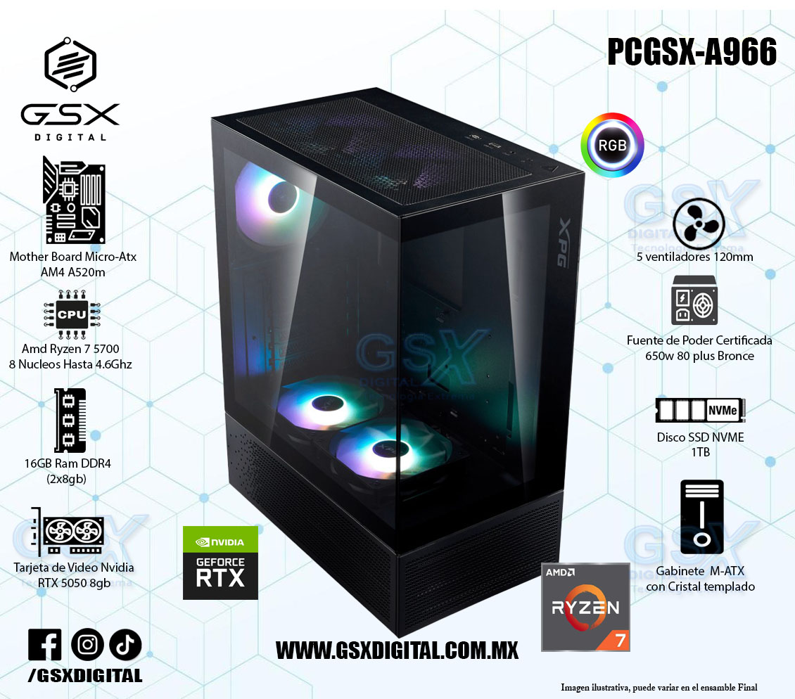 Pc Gamer Ryzen 7 - RTX 5050 8gb - 16Gb Ram DDR4 - SSD 1TB Nvme - Fuente Certificada 650W PCGSX-A966