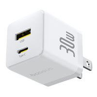 CARGADOR DE PARED 2 PUERTOS BASEUS, CARGA RPIDA, 1 TIPO C1 USB-A 30W, COLOR BLANCO BASEUS P1011160B213-00