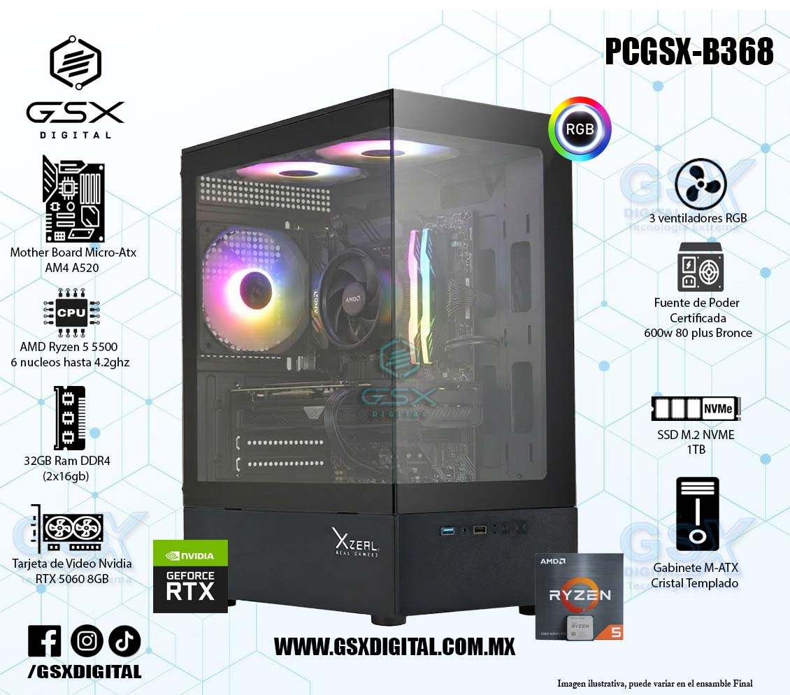 Pc Gamer Amd Ryzen 5 - RTX 5060 8GB - 32Gb Ram - SSD 1TB - Fuente Certificada 600W PCGSX-A368