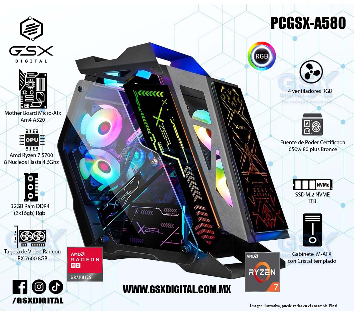 Pc Gamer Ryzen 7 5700 - RX 7600 8GB - 32Gb Ram RGB - SSD 1TB Nvme - Fuente 650W Certificada PCGSX-A580